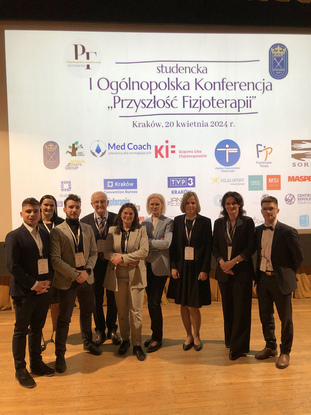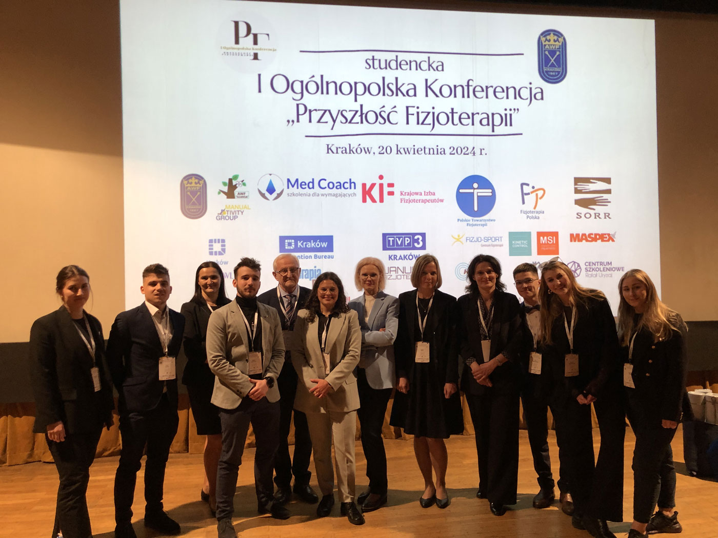 W dniu 20.04.2024 r. na terenie kampusu Akademii Wychowania Fizycznego w Krakowie odbyła się studencka I Ogólnopolska Konferencja „Przyszłość Fizjoterapii” organizowana przez Przewodniczących Kół Naukowych Wydziału Rehabilitacji Ruchowej ,,Szansa" oraz "Manual Activity Group" wraz z Opiekunem dr hab. Edytą Mikołajczyk, prof. AWF. Gościliśmy na niej znamienitych prelegentów- ekspertów z dziedziny fizjoterapii oraz licznie przybyłych studentów z całej Polski. Pani dr Dorota Gazurek, Prodziekan Wydziału Rehabilitacji Ruchowej oficjalnie otworzyła wydarzenie, witając Sponsora Głównego firmę Med Coach, Patronów Honorowych: dr Tomasza Dybka Prezesa Krajowej Izby Fizjoterapeutów, dr hab. Agnieszkę Stępień Prezes Stowarzyszenia Fizjoterapia Polska, dr Magdalenę Pieniążek Sekretarz Polskiego Towarzystwa Fizjoterapii Oddziału Małopolskiego oraz dr hab. Marka Pieniążka, prof. AWF Dyrektora Specjalistycznego Ośrodka Rehabilitacji Ręki. Partnerami konferencji byli również: Miasto Kraków, TVP 3 Kraków, Kinesio Polska, Reha Akademia, PWN, PZWL, Fizjopozytywni - Joanna Tokarska, Janusz Fizjoterapii, Czasopismo Medical Rehabilitation, Czasopismo Fizjoterapia Polska, Centrum szkoleniowe Rafał Uryzaj, Medwear, Kangoomed, Fizjo-Sport, Kinetic Control, Movement System Impairments, Maspex, Uczelniana Rada Samorządu Studenckiego.
