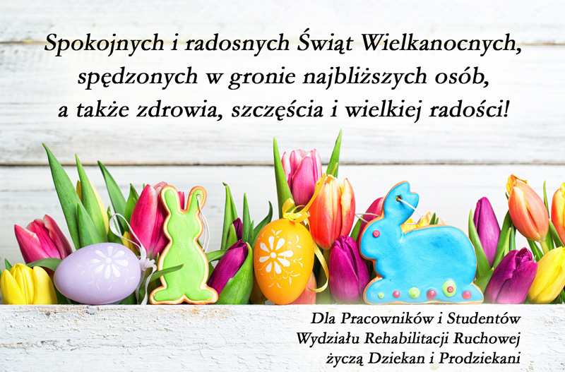Zgodnie z komunikatem JM Rektora Akademii Wychowania Fizycznego w Krakowie z dnia 19 marca 2021 roku w sprawie realizacji zajęć dydaktycznych prowadzonych na wszystkich kierunkach studiów w Akademii Wychowania Fizycznego w Krakowie w okresie od 20 marca do 9 kwietnia 2021 roku, informuję, że wszystkie zajęcia dydaktyczne na Wydziale Rehabilitacji Ruchowej za wyjątkiem zajęć prowadzonych na basenie będą się odbywać w dotychczasowym trybie z zachowaniem reżimu sanitarnego.